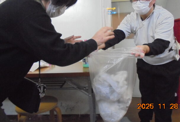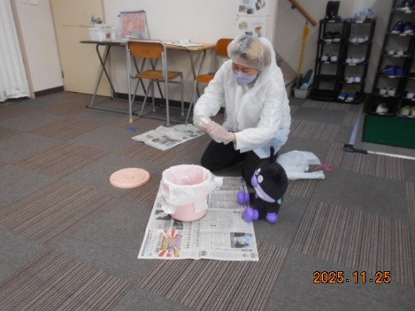 各事業所では感染症に関する研修として、嘔吐物処理の実演を行いました。
