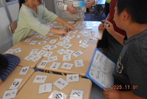どんな言葉が見つけられるかな?並べられた文字の中から、カードを選び、知っている言葉を見つけホワイトボードに